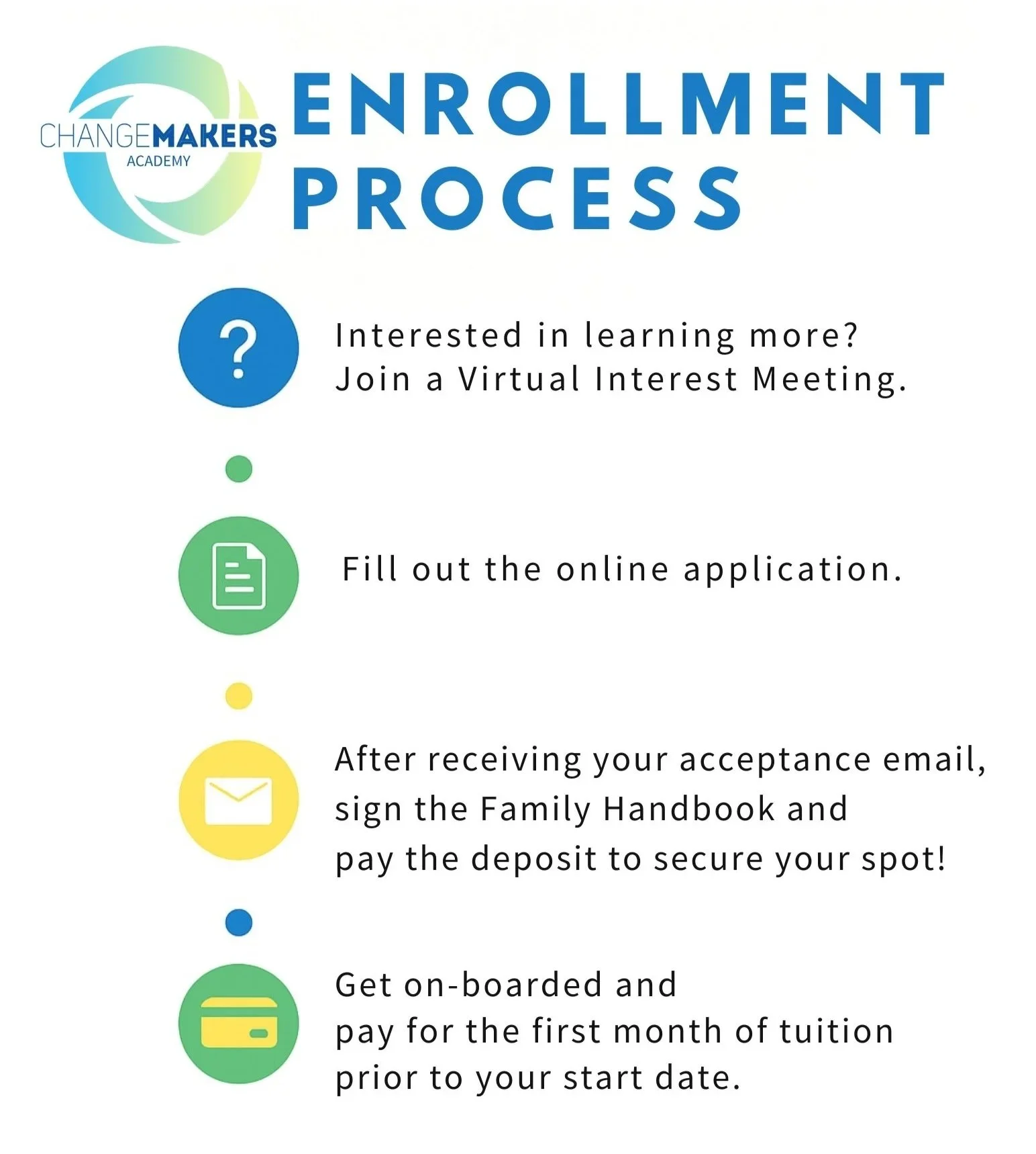 Once your application is accepted, a non-refundable $300 deposit secures your child’s spot. This fee covers classroom materials and supplies for the school year.